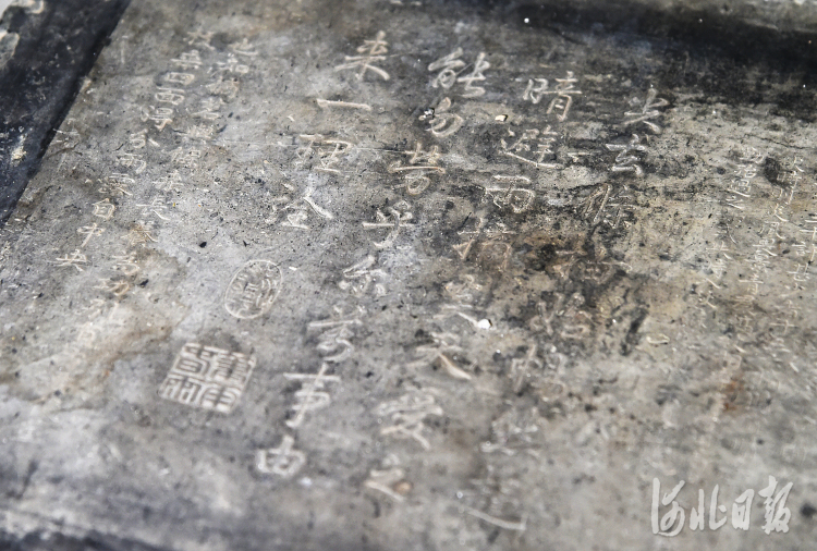 御题棉花图刻石局部。河北日报记者赵海江摄