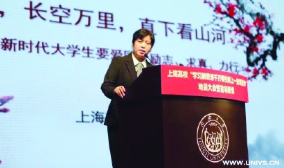 施索华的思政课是上海交大最受欢迎的课程之一,不论线上还是线下,都拥有众多粉丝。图为施索华在讲课。