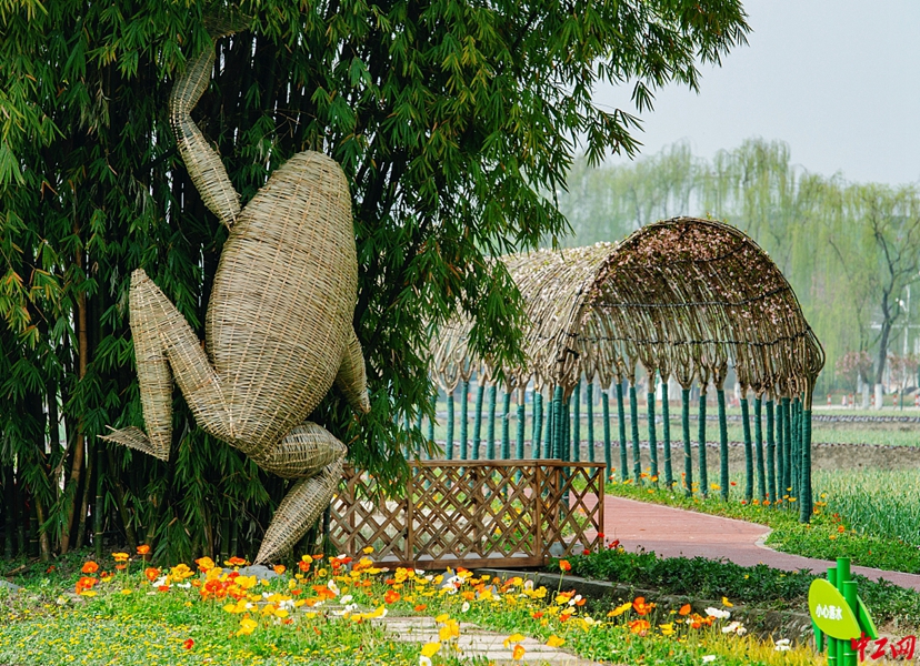 2021年3月14日,成都,以“天府大地、春之交响”为主题的中国·成都第二届天府大地艺术季在郫都区德源街道东林艺术村拉开序幕,游客踏着春光,欣赏出自国内外知名艺术家之手的装置艺术,在网红打卡点摄影留念,感受公园城市的乡村之美。