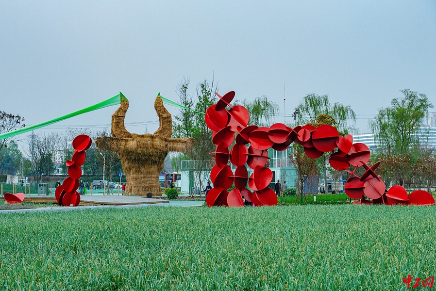 2021年3月13日晚,中国˙成都第二届天府大地艺术季在成都市郫都区农林艺术村启动。图为:种子的荣耀(红色)。