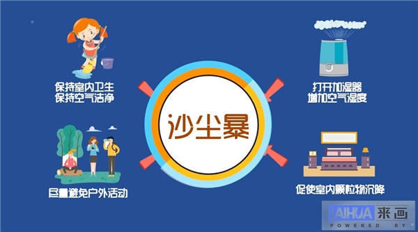 此外,要搞好室内卫生,保持空气洁净。条件许可情况下,可打开加湿器,增加室内空气湿度,促使室内颗粒物沉降。沙尘或沙尘暴过去后的数日内(特别是第2天)仍要尽量避免户外活动。