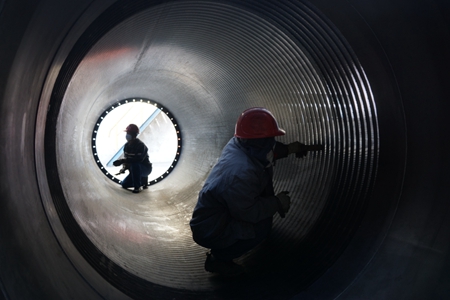 而在车间南侧的埋弧焊接班组,郝丽杰和同事正在有条不紊地进行加热炉筒体和封头角焊缝焊接工作。年初,该分公司在发现人工焊接费时费力且易出现夹渣、气孔,严重时影响产品的整体焊接质量后,决定采用埋弧自动焊,来提高工效。