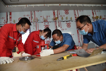 3月27日,中原油田采油气工程服务中心作业六大队胡彦兵创新工作室员工在马12-18井,对新研发的技术新式平底磨鞋进行现场教学。现场使用新型偏心式平底磨鞋装置使水泥塞颗粒物磨小变碎,水泥塞颗粒易返出,减少了磨铣时间长。