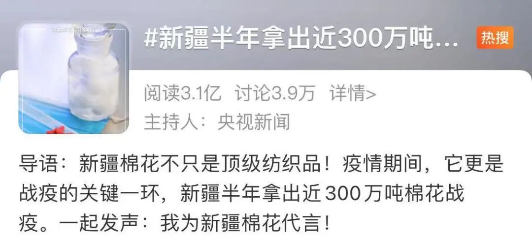#新疆半年拿出近300万吨棉花战疫#