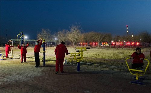 在新疆油田公司百口泉采油厂玛湖第一采油作业区,闲暇时大家喜欢去健身运动。(罗薇)