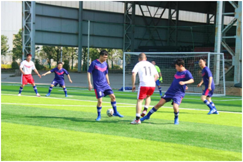 “传球……给我给我”“射门、射门……进了、好球……”,一场紧张激烈的职工足球赛正在举行。新兴铸管股份有限公司工会在厂区择选出一块空地建造一个小型足球场供职工使用,在丰富职工工余生活的同时,使久待办公岗位的身心获得了锻炼和放松。(杨亚京)