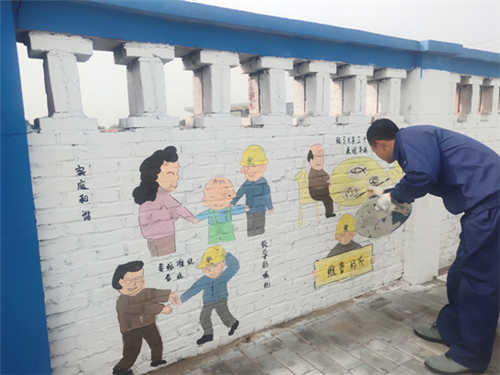 “‘与安全同行,与幸福相伴’,这些内容都是我们一起构思创作,一起动手绘制的。”一名员工边刷漆边指着墙面如是说道。墙上醒目的标题配合着一幅幅新颖的漫画,表达出员工自己对“安全”的理解和追求。中铁电化局运管公司呼和运营维管段托克托东工区利用工余时间自发组织绘制了一面“安全文化墙”。大家结合自己日常工作的感悟,用通俗易懂的文字和形象生动的画面,不仅绘制出一道亮丽的风景线,更构建出员工心中的安全防线展。(邓焕生)