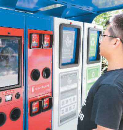 江苏省苏州工业园区某居民在体验通过人脸识别投放垃圾。朱桂根摄(人民图片)