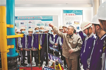 4月9日,河南安阳林州市林虑中学的学生走进安钢开展研学活动,听全国劳模李震廷讲述“钢铁是怎样炼成的”。