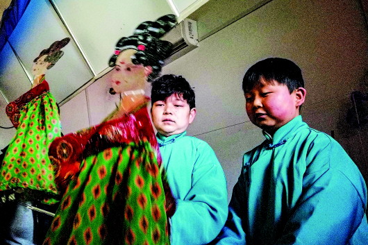 精灵梦皮影艺术团的演员在排练皮影戏(3月19日摄)。新华社记者许雅楠摄