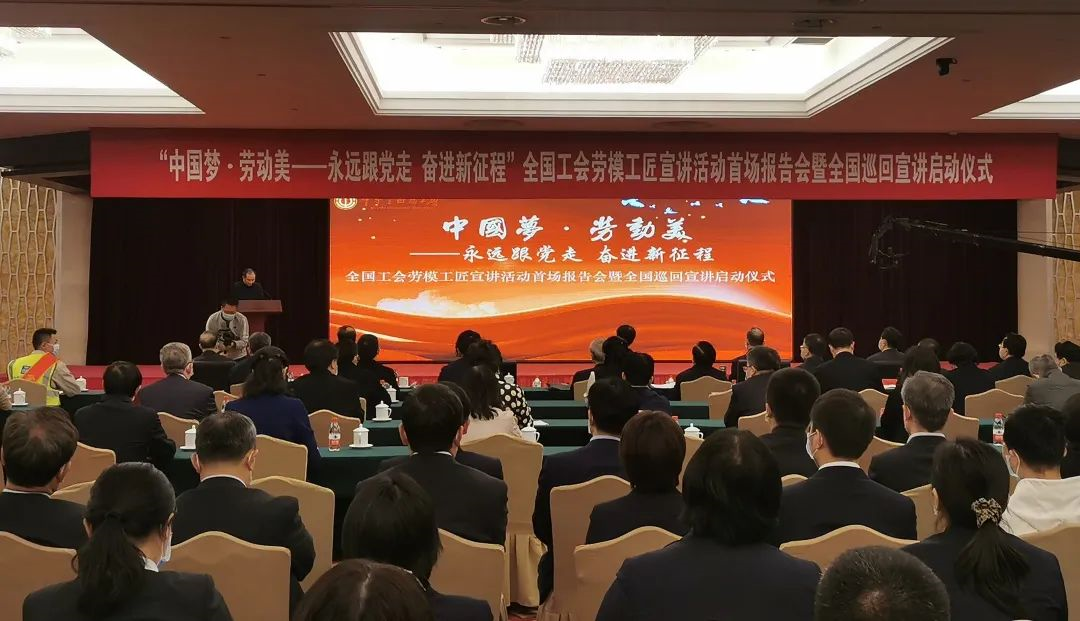 4月16日下午,全国总工会在北京举办“中国梦·劳动美——永远跟党走 奋进新征程”全国工会劳模工匠宣讲活动首场报告会暨全国巡回宣讲启动仪式。