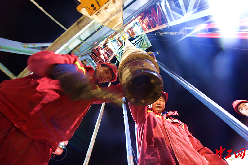 4月8日,克拉玛依石油工人迎着夜色正在新疆呼图壁境内的呼6井钻井施工现场紧张有序忙生产。周建玲 摄