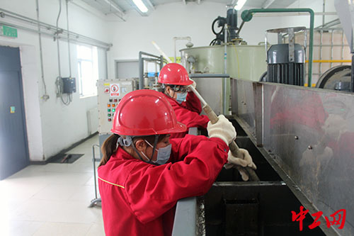 经过八个小时的奋战,两个药罐终于被彻底清理干净,姑娘们劳作后的红色倩影在渤海湾畔绽放出靓丽的光彩。(丁青 周利)