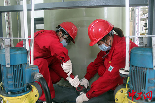 “今天保证将两个加药罐清理出来,绝不耽误加药进度影响注水水质。”冀东油田南堡作业区采油五区女子集输班女员工赵月婵和安万兰等4人毅然接下清理加药罐任务。