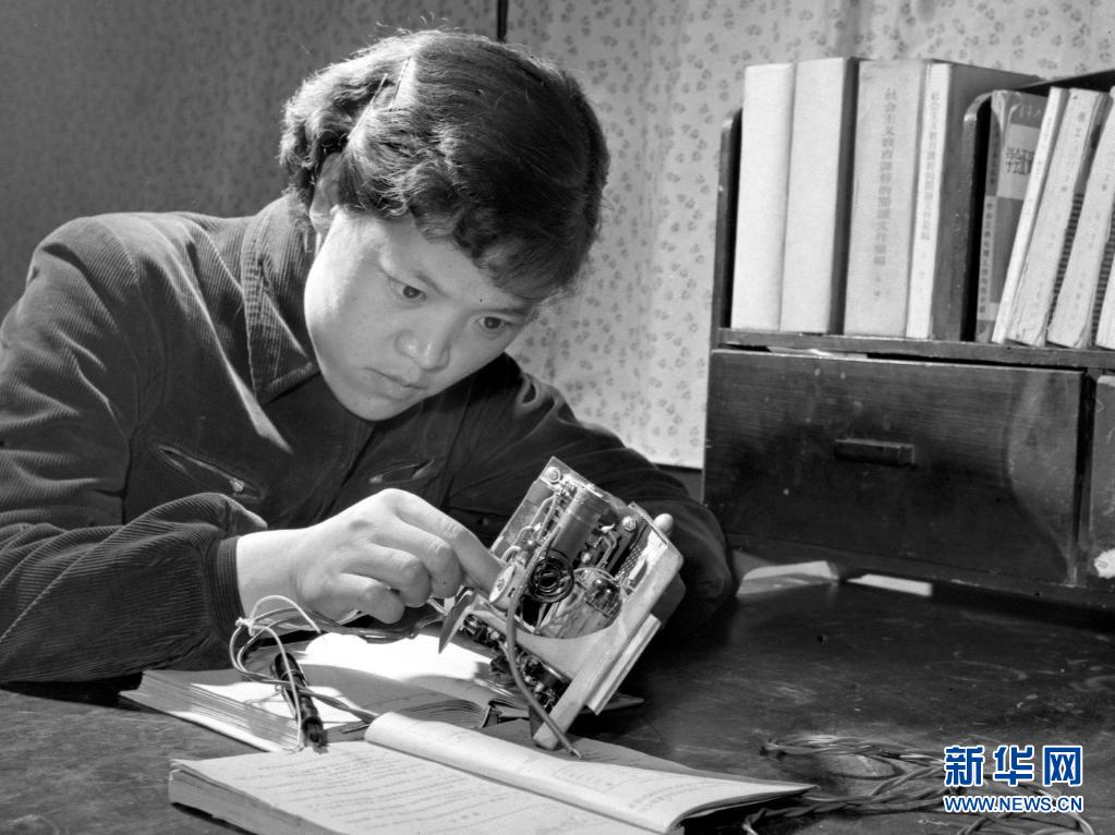 尉凤英进行一项新的技术革新项目的研究 (资料照片)。新华社发