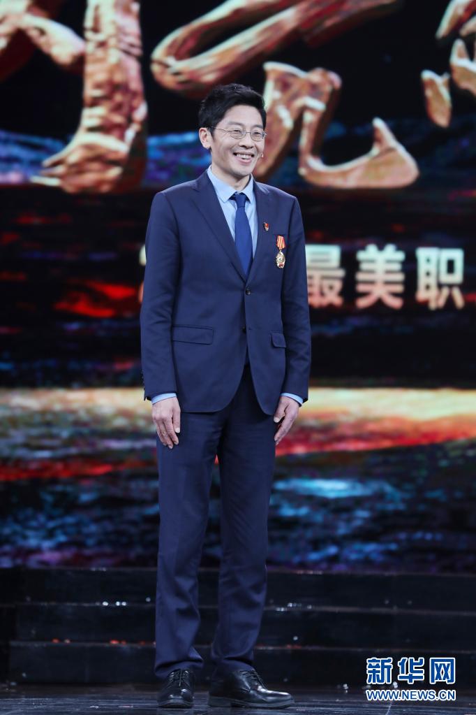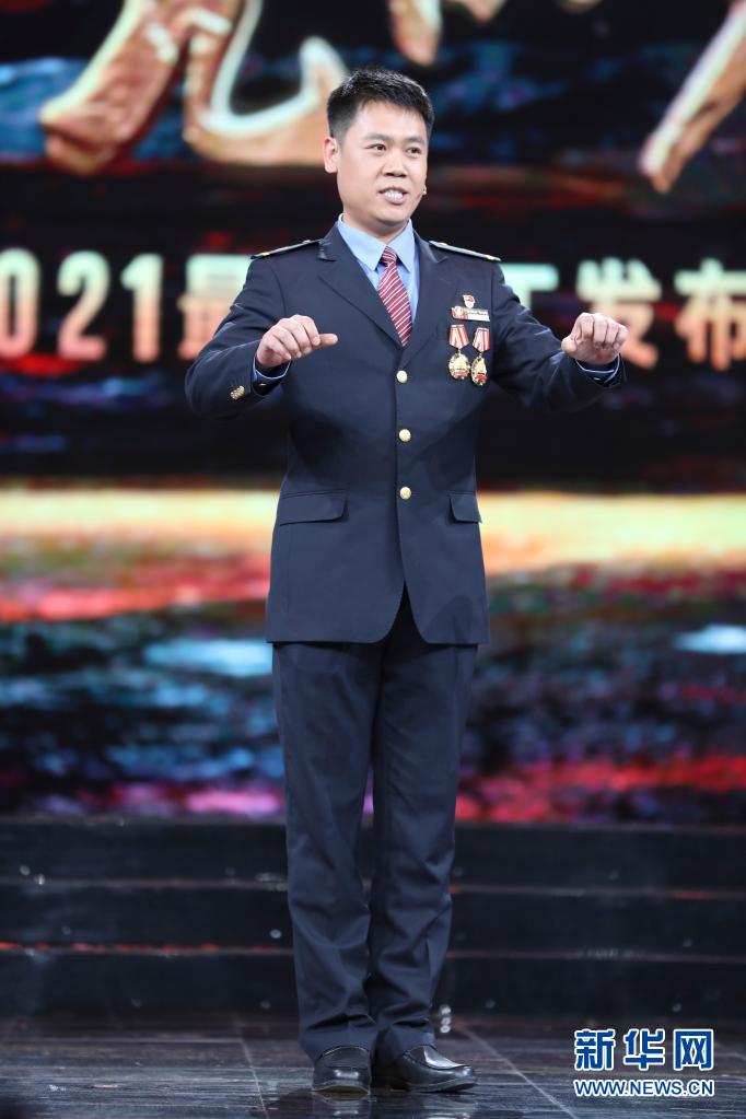 湖北省武汉市公安局蔡甸区分局大集街派出所副所长燕占飞在北京举行的2021年“最美职工”发布仪式现场(4月22日摄)。