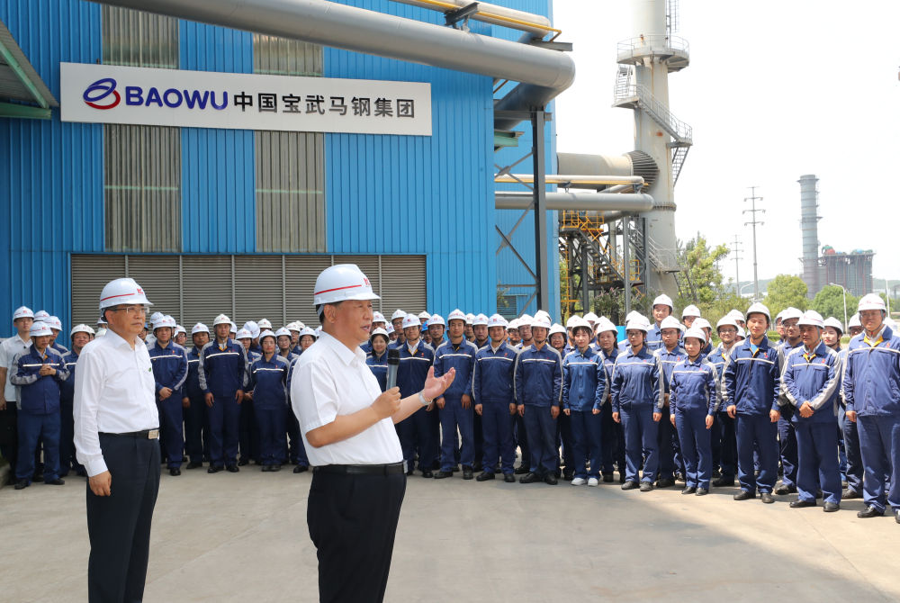 ↑2020年8月19日上午,习近平在安徽马鞍山市中国宝武马钢集团,同企业劳动模范、工人代表亲切交流。