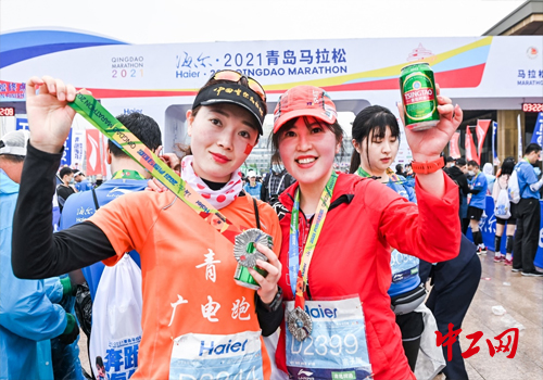 赛场终点,“砰”然开启一瓶好酒举杯欢庆,是马拉松参赛者的荣耀瞬间。“我在开跑前,就和跑友们设计好了,冲线之后要亲手开启一瓶青岛啤酒,分享胜利的喜悦。”来自北京的马拉松选手张扬说道,“特别有成就感,我永远记得这个瞬间。”