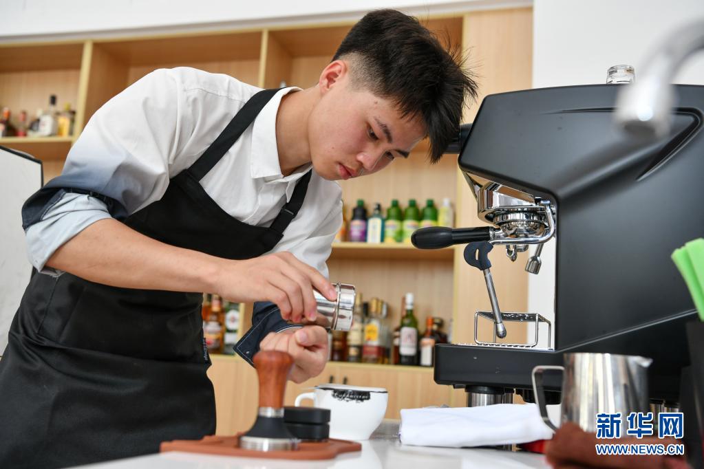 5月10日,龙里县中等职业学校学生参加咖啡调制技能比赛。
