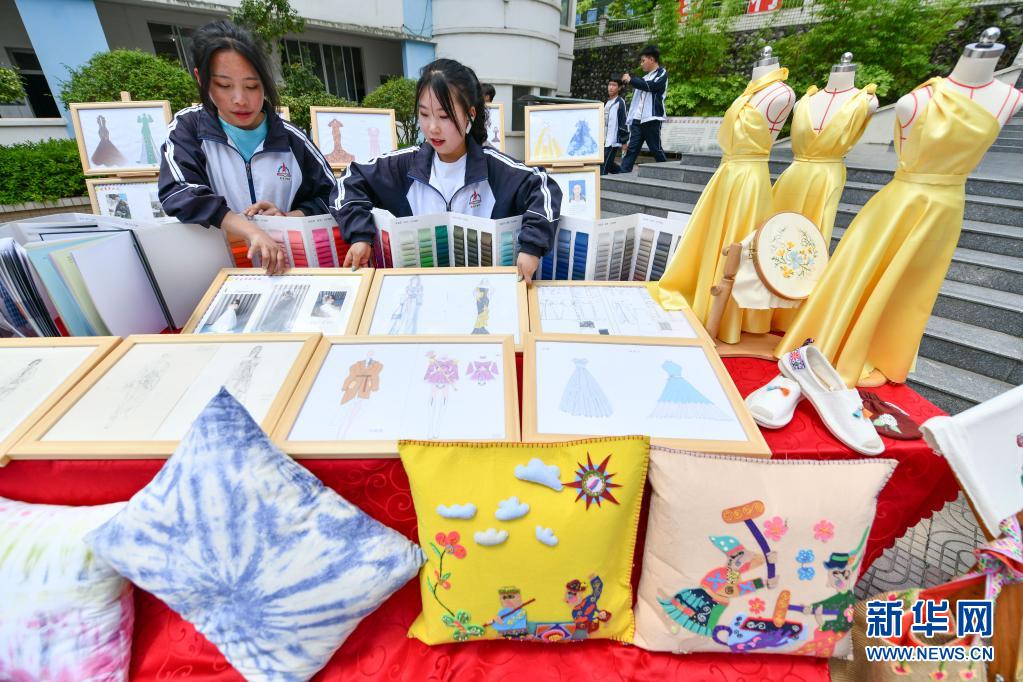 5月10日,龙里县中等职业学校学生展示服装设计专业相关作品。