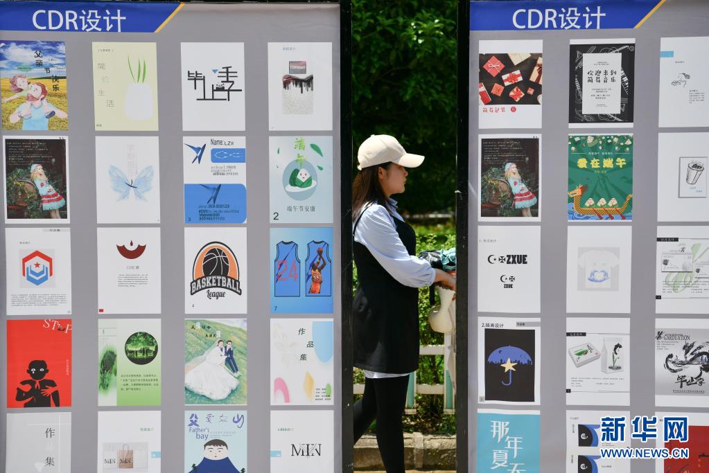 5月10日,龙里县中等职业学校老师参观学生平面设计作品。