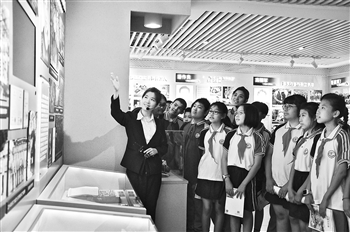 讲解员于淼为来自沈阳市回族小学的同学们讲述劳模感人事迹。李妍 摄