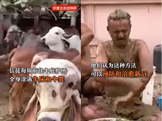 对于网上报道印度有人抹牛粪防新冠