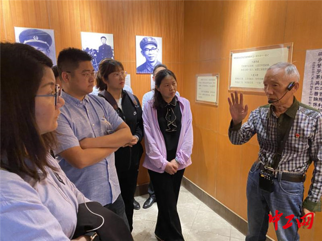 5月13日,丹阳市总工会组织百名一线优秀职工代表前往延陵镇贺甲战斗纪念馆,听“守陵人”贺冬根老人指着布满弹孔的墙壁为职工们讲述着当年发生在延陵的战斗故事。“游览名山名川,看到的虽是美景,但只能愉悦一时,参观红色基地,学的是革命精神,可以激励一生。”丹阳市文体广旅局优秀职工代表孙国武感慨道。