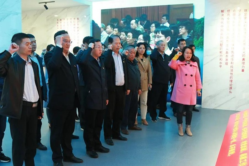 首先,东营市总工会组织全体党员到广饶县开展参观《共产党宣言》陈列馆暨党史学习教育实地调研活动。在《共产党宣言》陈列馆,大家跟随解说员的讲解,参观回顾了《共产党宣言》在世界、在中国、在广饶诞生、传播、忠诚守护和传承发展的光辉历程,追溯共产党人的理论源头。参观完成后,全体党员面向党旗庄严宣誓。