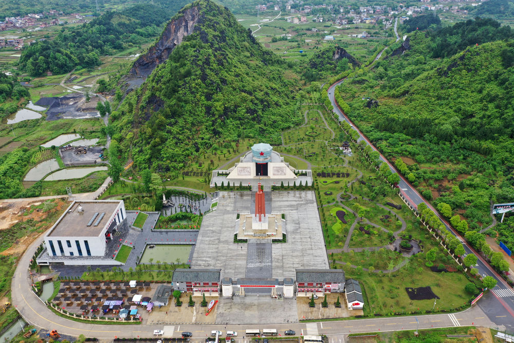 广西灌阳县湘江战役新圩阻击战酒海井红军纪念园(无人机照片,4月27日摄)。新华社记者陆波岸摄
