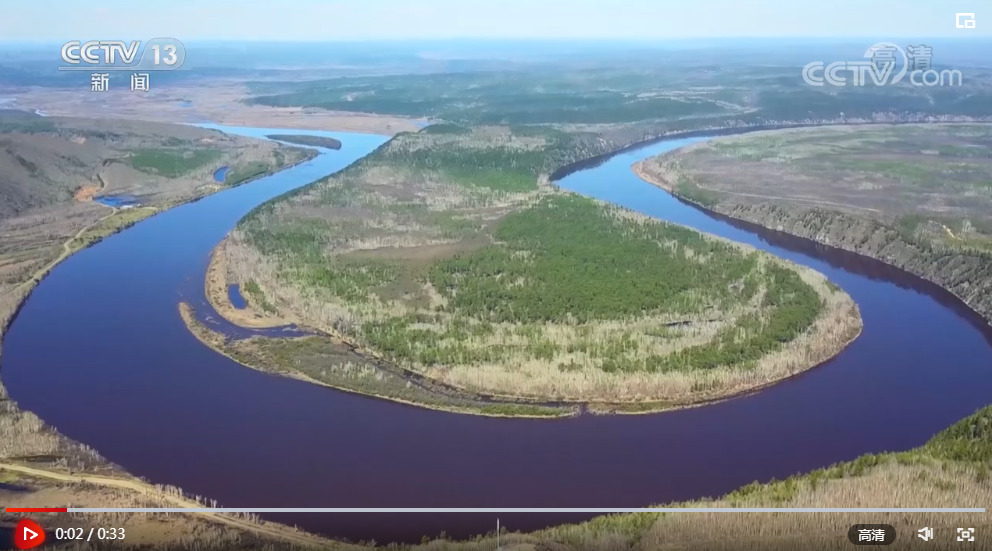 央视网消息:您现在看到的是龙江第一湾,在我国版图最北端,在黑龙江大兴安岭图强林业局内,画面中间的这条江就是中俄界江——黑龙江。