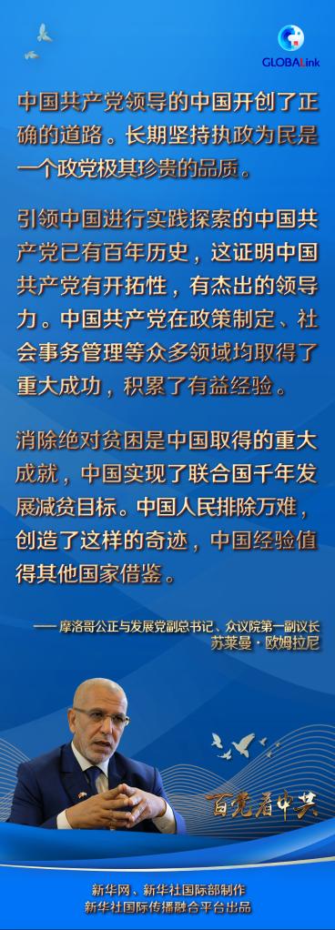 欧姆拉尼说,中国共产党注重与其他政党的交流。摩洛哥公正与发展党与中国共产党于2010年正式建立了联系,此后两党频繁组织互访和交流活动,公正与发展党从中汲取了很多好的经验。