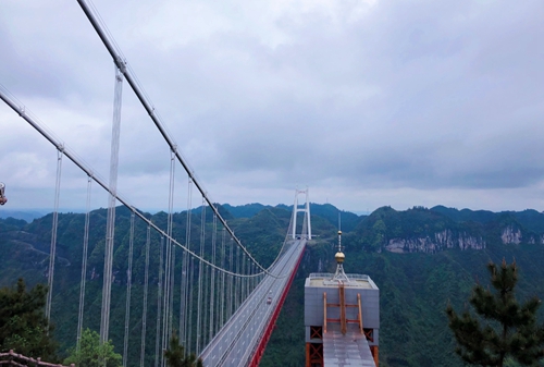 “壑险一桥穿,飞虹索半悬。”如今的矮寨大桥主跨1176米,桥面垂直高度355米,是包头至茂名国家高速公路在湖南省境内的一座特大钢桁梁悬索桥。