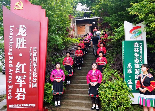 “昔日长征路,变成今日致富路”,龙胜县人大工委主任周恩平在介绍白面瑶寨时说。依托公路建设,白面瑶寨把优美而独特的梯田自然景观及浓郁的瑶族风情开发成经典的旅游产品,村民也搞起了农家乐旅游,富于民族特色的饮食和歌舞吸引了无数中外游客纷至沓来。