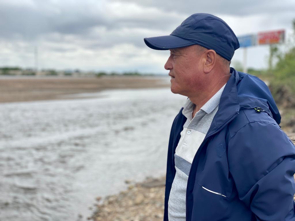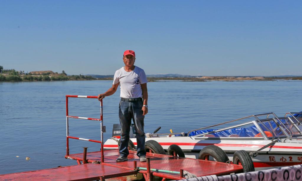李忠华在嫩江岸边瞭望。新华社记者 刘赫垚 摄