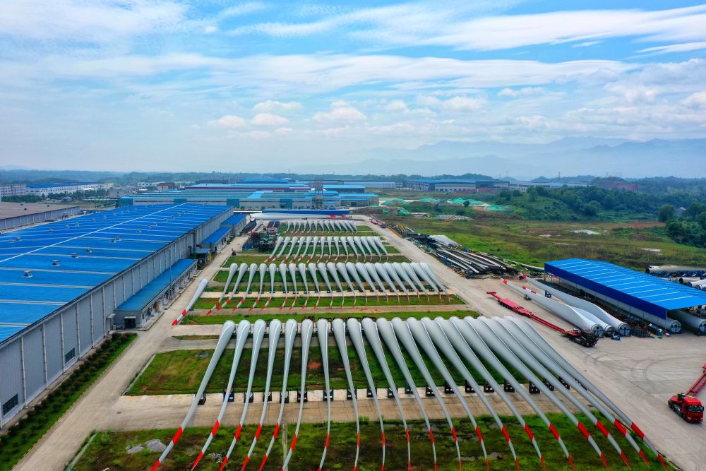 △芦溪县中材科技(萍乡)风电叶片有限公司,生产的大型风电叶片航拍景象。(王强摄 新华社记者黄浩然通联)