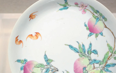 清乾隆粉彩过枝花福寿纹瓷盘 动脉影摄