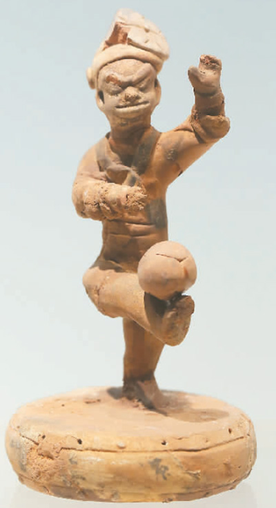 宋红陶胡人踏鼓蹴鞠像 动脉影摄