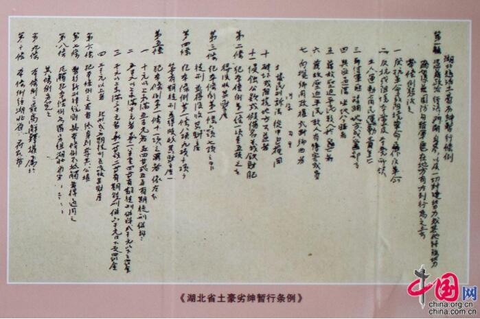 旧址内展示的《湖北省惩治土豪劣绅暂行条例》。中国网记者 郑亮摄