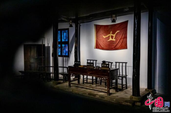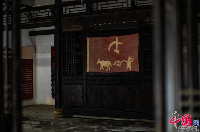 七里坪革命法庭内展示的锄头旗。中国网记者 郑亮摄