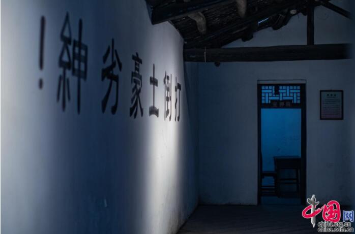 七里坪革命法庭内的羁押室和标语。中国网记者 郑亮摄