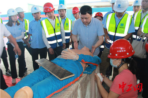 此外,分公司还特邀第四军医大学骨外科学博士、南方医科大学南方医院骨科博士后刘诗滦,福建中医药大学附属康复医院重症医学科副主任医师彭明到现场做项目工伤应急讲座及救援演练,与工友面对面传授各种伤情的应对措施。工友们边看边学,感叹道:“这次演练太实用了!没想到工地上一块小小的木板,在关键时刻都能变成应对骨折的固定夹板,避免二次伤害,争取急救时间。”