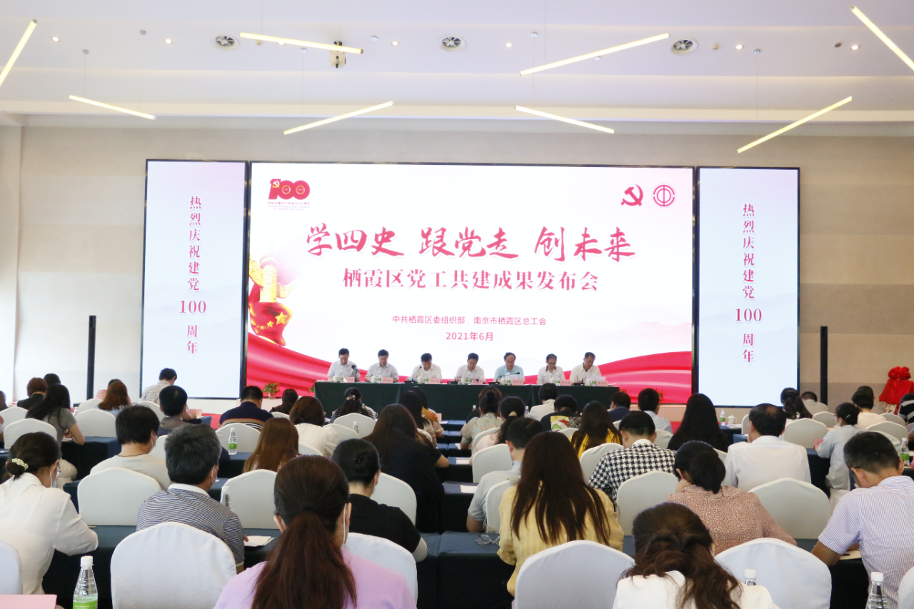 6月8日下午,南京市栖霞区委组织部、区总工会在紫东会议中心召开“学四史、跟党走、创未来——栖霞区党工共建成果发布会”,总结5年来党工共建工作成果,全面部署2021年党工共建工作。