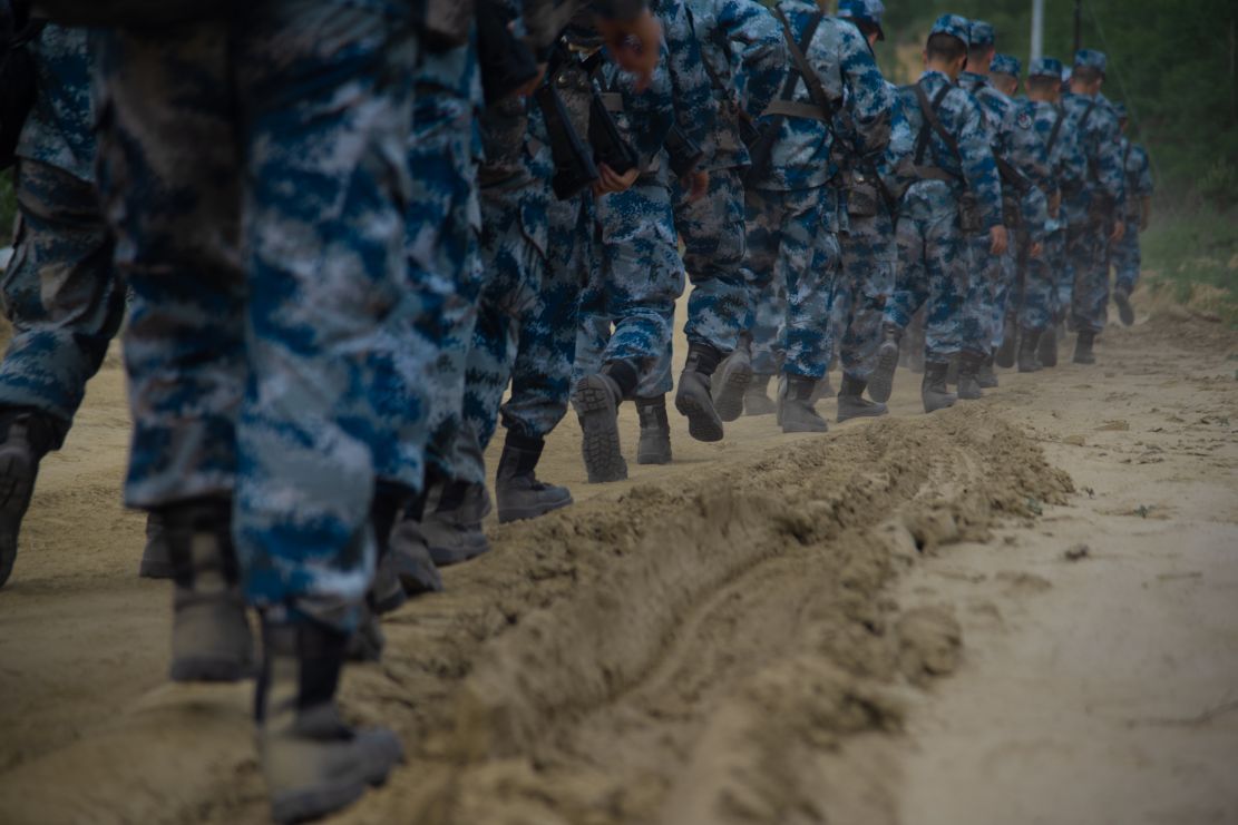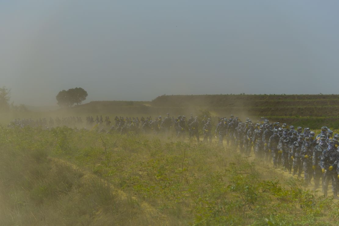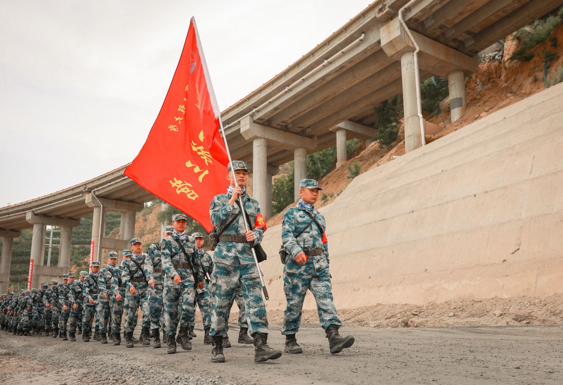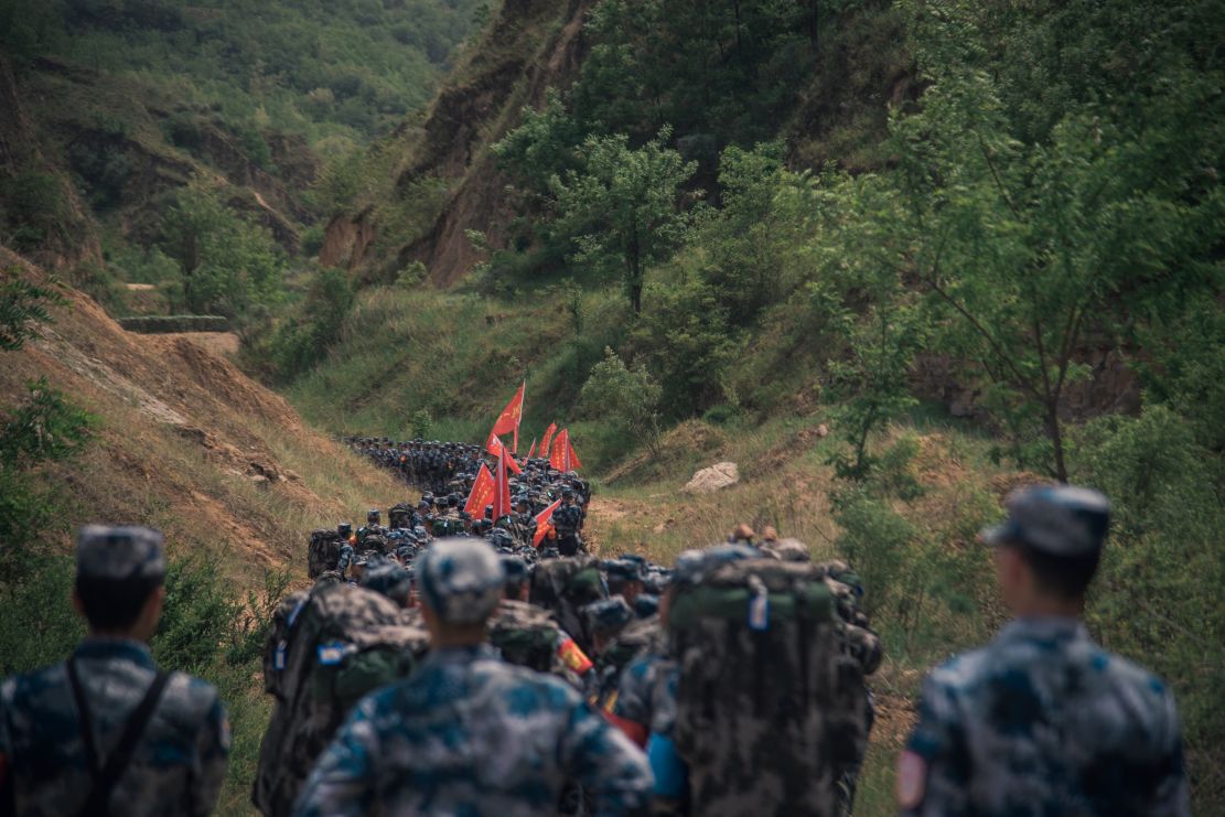 陕北高原腹地的崇山峻岭间,百余名官兵战烈日斗酷暑,克服高荷负重、长途行军、天气炎热等困难,展开徒步行军、红蓝对抗、战场机动、遭遇空袭、紧急集合等科目,全方位淬火,全程练打仗,处处闻硝烟,全面锤炼部队“走、打、吃、住、管、保”综合能力。