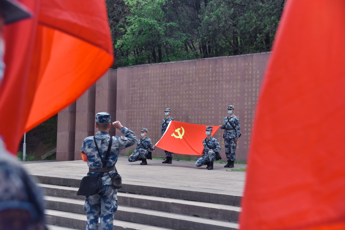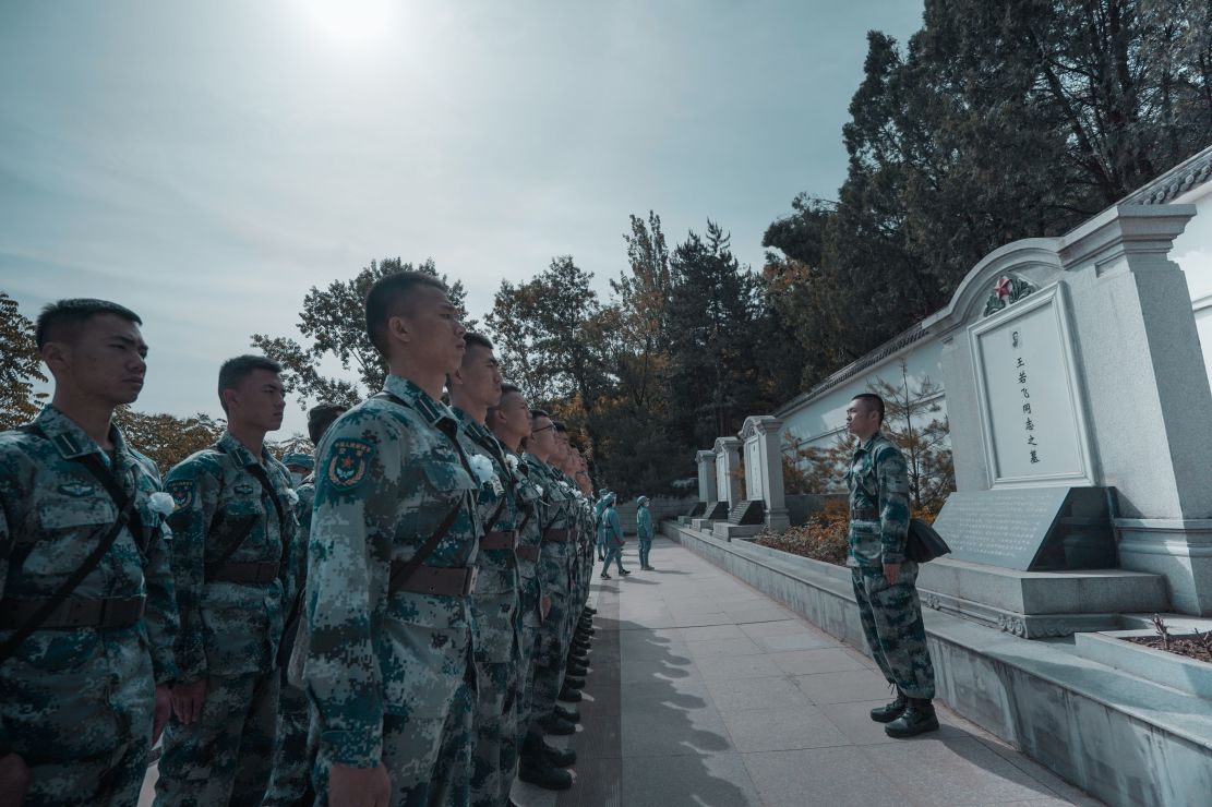 青山有幸埋忠骨,翠柏无言祭英烈。部队在四·八烈士纪念碑前庄严肃穆,深刻缅怀先辈。王若飞烈士后代张根溪在墓碑前向战友讲述先辈的奋斗故事,他告诉笔者:“小时候家人就常讲述他的光辉事迹,我从小就励志参军,入伍报国。如今,作为一名军校学员,向身边的战友讲述先辈的事迹,我更加珍惜身上流淌的红色基因。”