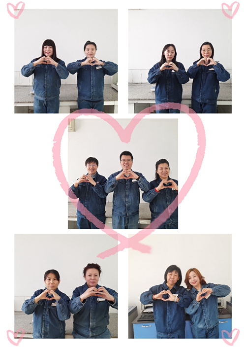 “班长,咱们班合照费劲,那就单照,拼起来就是一副全家福啊!”前不久,该班组员宋含怡突发妙想,瞬间点燃了全班的热情。几天的功夫,大家的照片就集齐了。找来厂里宣传干事小李用拼图软件那么一合成,一张“比”满“爱心”的班组“全家福”诞生了!(李文静)