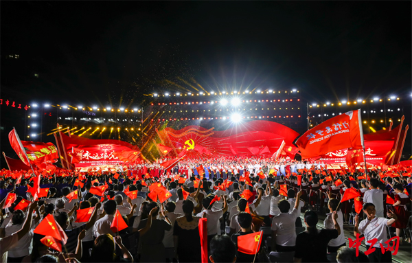 有着40年党龄的福建中烟退休职工陈子强成为了首批“入团”的团员。他站在百人团的方阵中,带领全场职工重温入党誓词。曾经当过车间学徒、捧烟工、挡车工、机修工的他,亲历了改革开放的风雨征程,也见证了厦门的发展变迁。“时代给了我们更大的舞台。”他感叹,“今晚,我这个老党员在党旗下看到了2700多名闪着光的工人!”