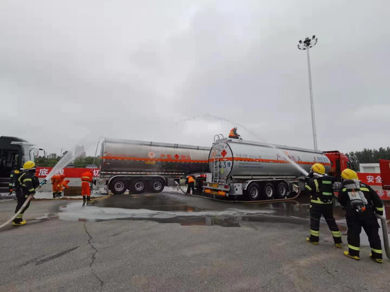 据悉,演练模拟一辆装满危化品甲醇的运输车辆被一辆载满乘客的大客车追尾,造成液体甲醇泄漏,客车司机受伤昏迷的重大交通事故。演练科目包括道路危险货物运输和道路旅客运输事故前期处置,分为旅客疏散、危化品泄漏临时应急处置、事故报告;现场联合应急处置,分为警戒区划定、事故区域可燃气体稀释监测、罐体修复堵漏、危化品倒罐和收容;旅客应急转移。事故发生后的及时上报、指挥协调、预案启动、现场抢险、医疗救援、安全疏散和社会沟通等具体内容来源于实际,涵盖了交通事故应急救援处置的各个环节,场景逼真,研判合理,决策及时,达到了预演目的。