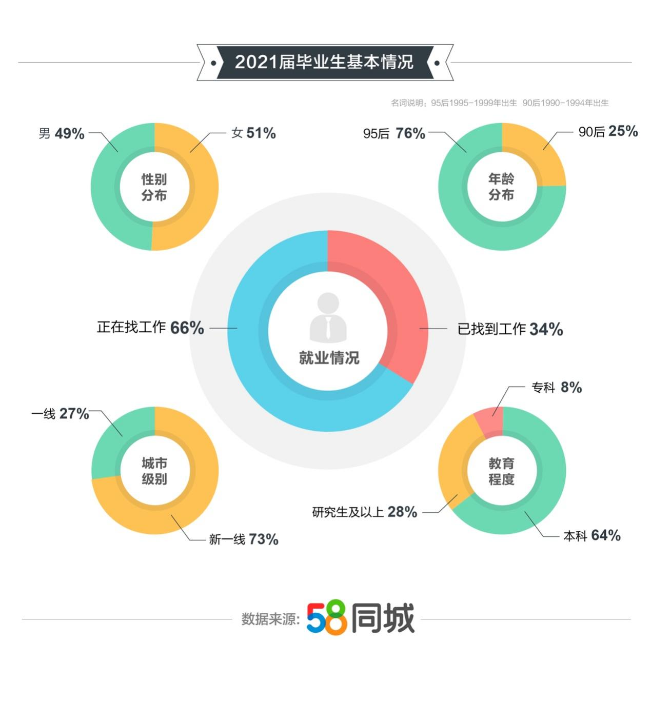 随着2021毕业季的到来,毕业生就业情况成为了社会热点话题。据58同城调研显示,已经有相当一部分毕业生找到了心仪的工作。与此同时,58同城也关注毕业生群体就业情况,凭借大数据优势,深入了解当下毕业生求职偏好。