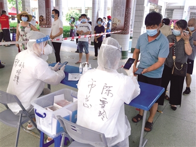6月9日下午,广州市荔湾区新型冠状病毒肺炎疫情防控指挥部发布《关于开展荔湾区北片区域全员核酸检测的通告》。10日一大早,广州市总工会党员志愿服务支队副队长、抗疫突击队队员陈雪玲又一次闻令而动,驰援站前街道流花中学核酸检测点。